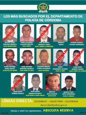 Se requiere de un trabajo coordinado entre la Policía Nacional y la comunidad para poder prevenir la comisión de los diferentes delitos en los municipios de Córdoba, por tal razón si tiene información sobre la posible ubicación de estas personas, la invitación de las autoridades es a que denuncie bajo absoluta reserva y seguridad a través de las líneas directas 3213948597 – 3202977848 – 3213940604.