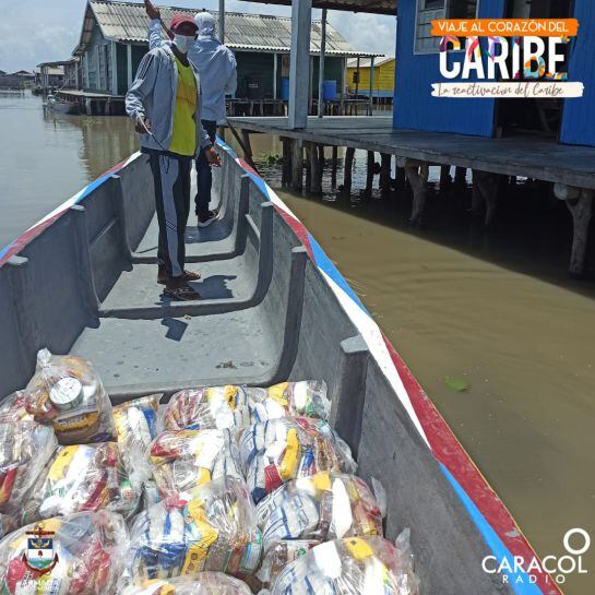 Lancheros ayudaron a transportar ayudar desde el mirador de pueblo Viejo. / Caracol Radio Barranquilla