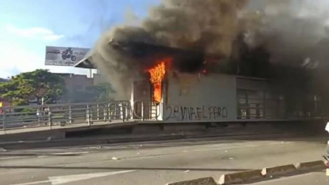 Los bomberos quienes intentaron atender algunos de los incendios provocados por los manifestantes no pudieron hacerlo debido al complicado estado del orden público.