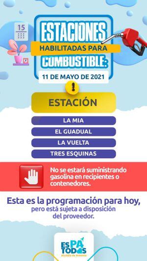 Cuatro estaciones venderán hoy gasolina en Armenia