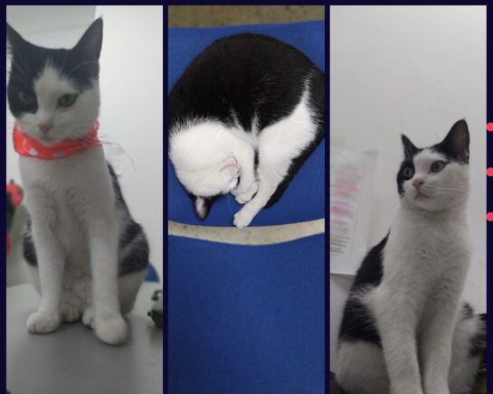 Timba es una gatita blanca con machas negras y un rostro adorable que siempre lleva una pañoleta como forma de identificación, “al principio usaba una un collar con la placa pero vimos que le molestaba mucho, entonces ya usa una pañoleta para que la gente pueda identificarla si se pierde, como ha pasado ahora”, aseguró Valentina.