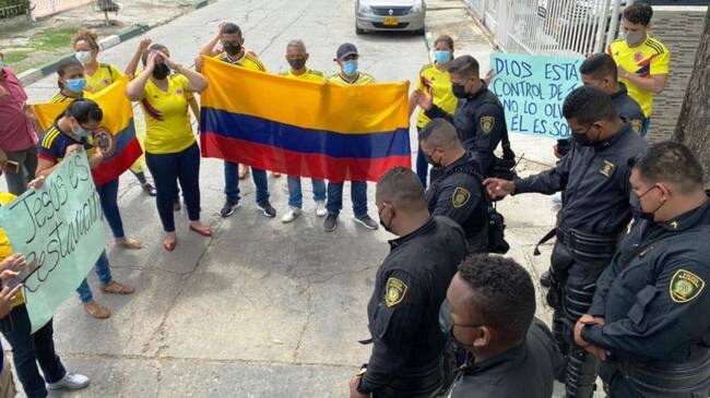 Con una cadena de oración, algunos miembros de la comunidad del barrio Alto Bosque, se acercaron a los policías del Escuadrón Móvil Antidisturbios - Esmad, quienes garantizan el desarrollo de la manifestación pacífica en la ciudad, corregimientos y municipios aledaños.