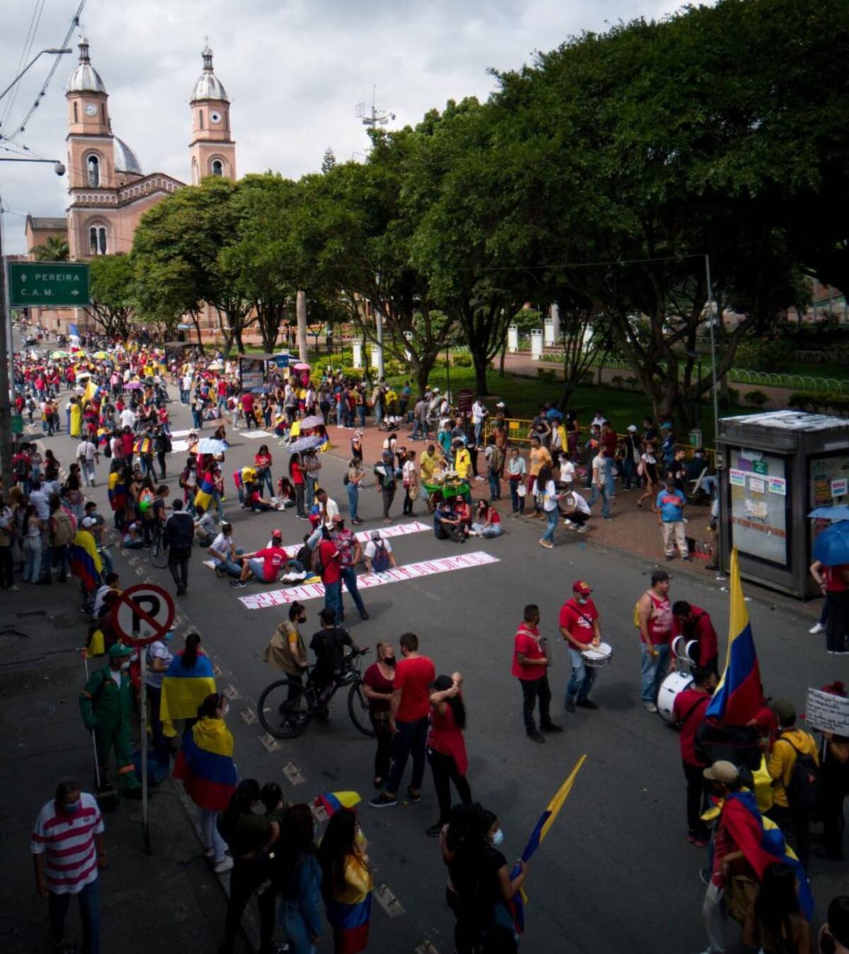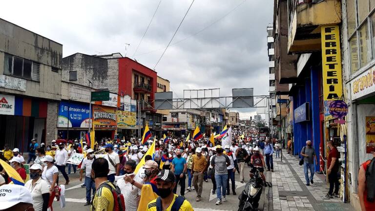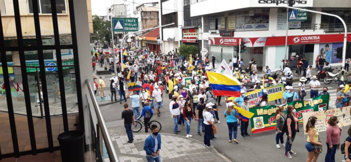 La carrera 21 en pleno centro, es una ruta obligatoria en las marchas en Armenia