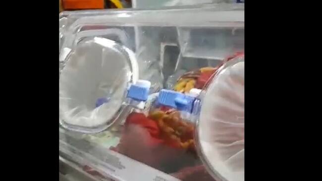 Ambulancia en la que era transportada la bebé recién nacida / Redes sociales
