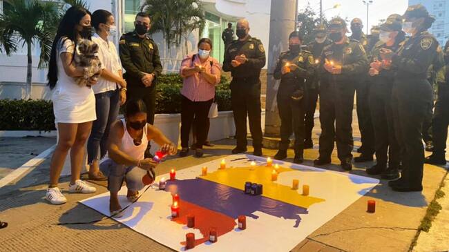 “Agradecemos a las lideresas del barrio Blas de Lezo, quienes en esta velatón reafirmaron un mensaje de apoyo y solidaridad hacia la Policía Nacional, pidiendo a los manifestantes que los hombres y mujeres policías e instalaciones, representan armonía, convivencia, tranquilidad y seguridad”, afirmó el Coronel Tahir Rivera Suescún, comandante Departamento Policía Bolívar.