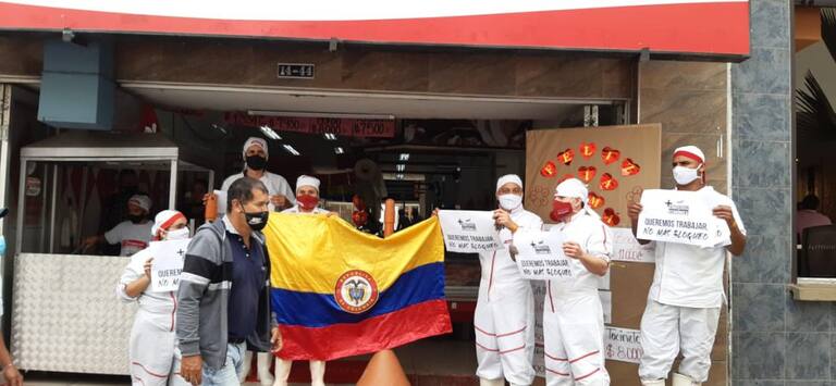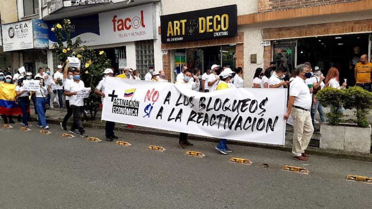 Los trabajadores del comercio del centro de Armenia apoyaron la marcha