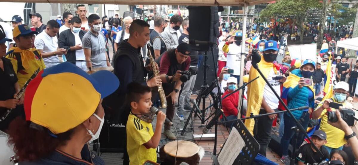 La plaza de Bolívar de Armenia practicamente llena con la manifestación