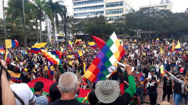 Las comunidades indígenas encabezaron la marcha en la capital del Quindío
