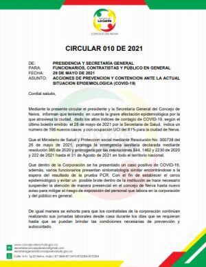 En lo corrido de la pandemia, este es el tercer contagio masivo del virus que reporta la Corporación edilicia de la capital del Huila.