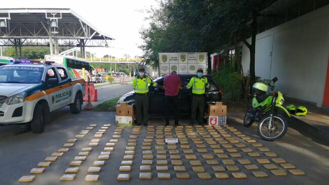 De acuerdo con el reporte de la Policía, en la inspección al auto encontraron 85 kilos de marihuana.