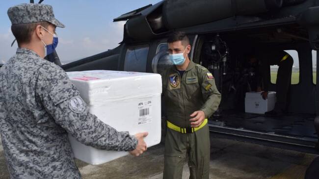Por bloqueos, fuerza aérea traslada vacunas contra COVID al norte del Valle