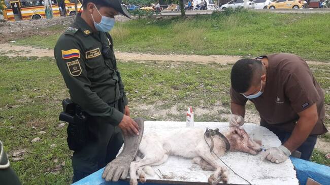 Policía rescató a un perro maltratado por otros animales en Cartagena