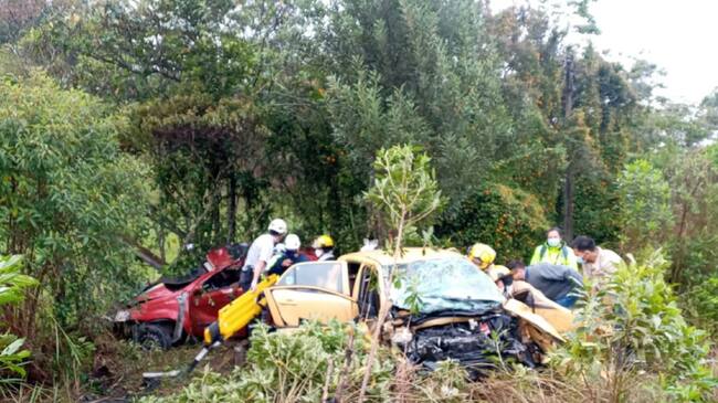 En la vía que conduce del municipio de Guarne al aeropuerto José María Córdova, Km 7+450, se presentó el choque mortal en horas de la mañana, entre un vehículo de transporte público ocupado por cinco personas pertenecientes a una familia y otro particular en el que viajaban cuatro personas.