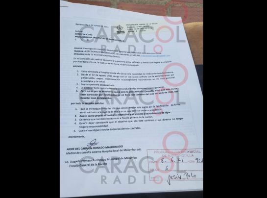 Contrato supuestamente firmado por la médica / Caracol Radio