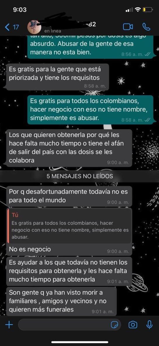 “Le piden a uno llegar más temprano para que lo puedan pasar. Una persona se sube al carro hasta llegar al punto de vacunación y ellos ya saben que es la persona que está pagando por la vacuna. Lo mínimo que la venden es 500.000 pesos por cada dosis”, dijo otra persona que por seguridad y temor a amenazas, prefirió ocultar su nombre.