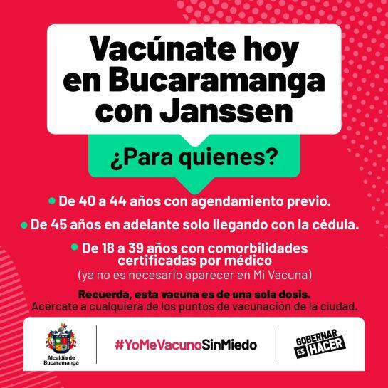 Vacunarán a mayores de 18 años con una sola dosis / FOTO: Alcaldía de Bucaramanga