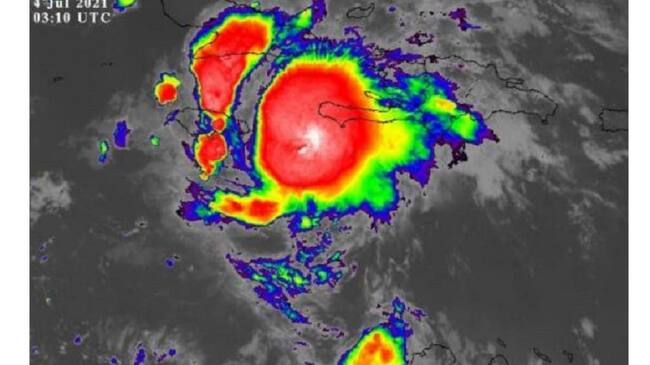 De acuerdo con el más reciente informe del Centro Nacional de Huracanes (NHC, por sus siglas en inglés), en el mar Caribe central, la Tormenta Tropical Elsa presenta vientos sostenidos de 55 nudos, es decir, 101 km/h.