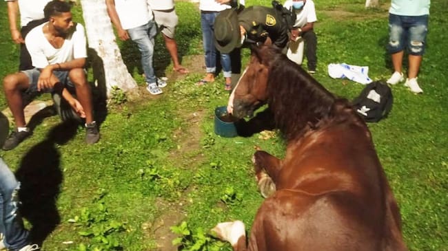 La Policía Nacional a través del grupo de Protección Ambiental de Cartagena, prestó asistencia veterinaria a un equino que se desplomó en la Avenida Santander. Según el organismo policial, este animal fue encontrado exhausto con señales de deshidratación e hipocalcemia, generando así su debilidad motivo por el cual, se encontraba tirado y sin poder levantarse.