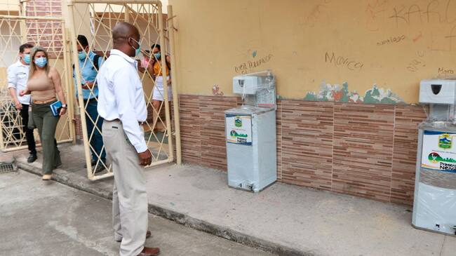 Para dar inicio a las clases presenciales, el municipio de Neiva dotó a 91 sedes educativas con jabones para manos, tapabocas, lavamanos portátiles y fijos, entre otros elementos de bioseguridad.