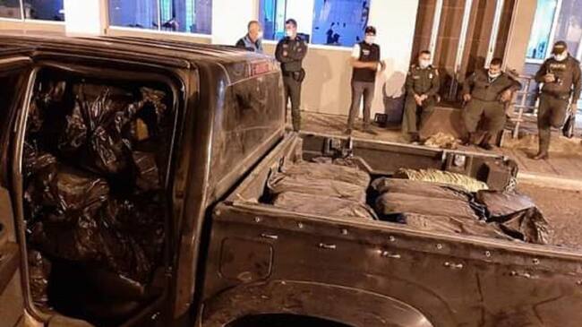 Después de que se registrara un aparatoso accidente de tránsito en el municipio de Anserma, occidente de Caldas, donde se vieron involucrados dos vehículos particulares, la policía de la localidad, halló en el interior de una camioneta cerca de 300 kilos de marihuana que estaban empacados en varios paquetes.