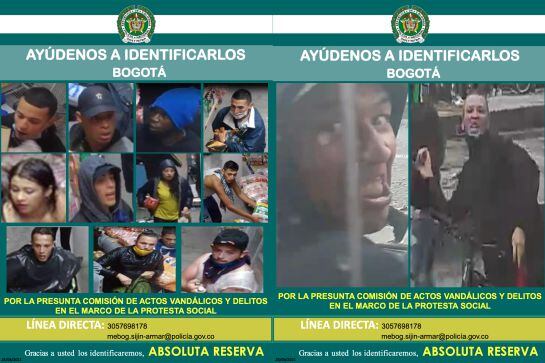 La Seccional de Investigación Criminal de la Policía de Bogotá en coordinación con la Secretaría de Seguridad hace el lanzamiento del cartel ‘Ayúdanos a Identificarlos’, con el que se busca la identificación y captura de 25 personas que estarían involucradas en hechos de alteración del orden público en el marco de las manifestaciones pacíficas registradas durante losúltimos dos meses y 16 días en la capital del país.