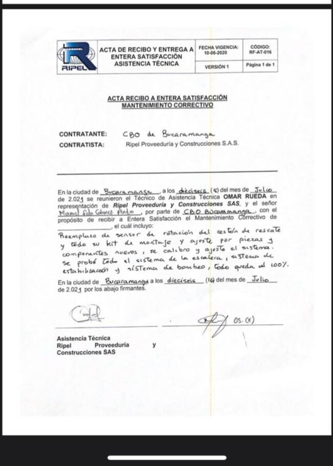 "El carro fue verificado por el operador en Colombia de la firma alemana, no ha dejado de funcionar está en servicio de los bumangueses, tal vez no tiene el uso diario porque no se presentan tantas emergencias que ameriten su funcionalidad".