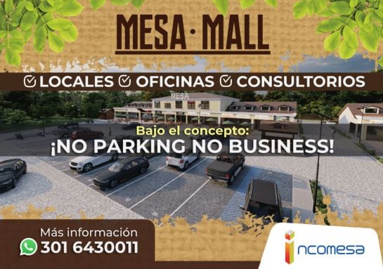 Si desea más información sobre el gran proyecto MESA MALL puede llamar o escribir vía whatsapp al 3016430011.