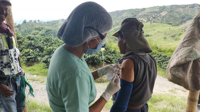 El Hospital Departamental Santa Sofía de Caldas, la Alcaldía de Palestina y el Comité de Cafeteros de la localidad adelantan el proceso de vacunación contra la COVID-19 para los cultivadores y recolectores del grano, visitando los lugares más remotos de la zona rural para llegar hasta cada una de las fincas.