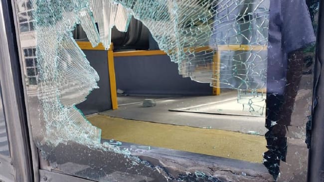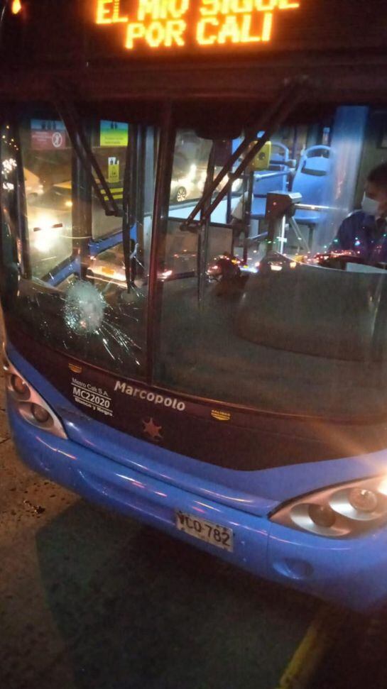 Un tercer bus, fue atacado en Calipso por personas que desde el segundo piso de la estación lanzaron piedras contra el vehículo.