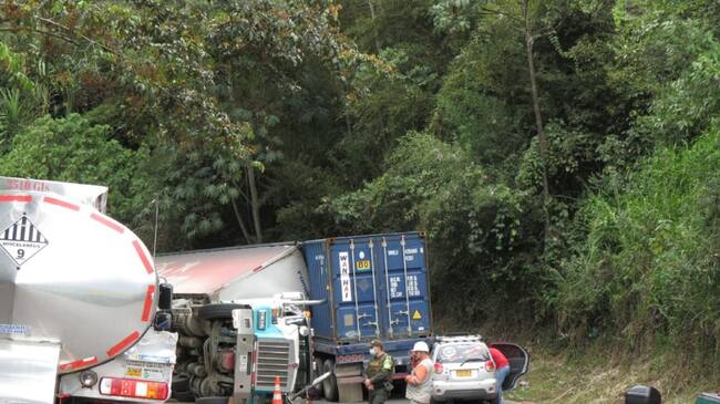 En el lugar se reportó el choque entre dos vehículos de carga pesada, una de las tractomulas llevaba en su interior cerveza, iba en el sentido Ibagué – Cajamarca.