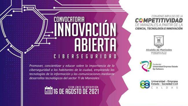 Hasta el próximo 16 de agosto a las 5:00 p.m. estará abierta la convocatoria de Innovación para fortalecer la Ciberseguridad, iniciativa que se realiza la Secretaría de TIC y Competitividad y la Fundación Universidad Empresa Estado Eje Cafetero, con el propósito de impulsar iniciativas enfocadas en la ciencia, tecnología e innovación en beneficio de los manizaleños.
