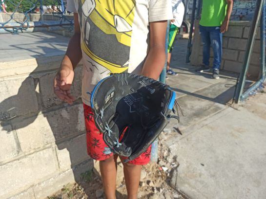"Mire a estos niños practicando aquí descalzos con chancleticas y los guantes son de cuerina, a los dos días de estar practicando, no funcionan", dice el entrenador Jerónimo Ramos, quien tiene a su cargo la formación en softbol de al menos 70 niños.