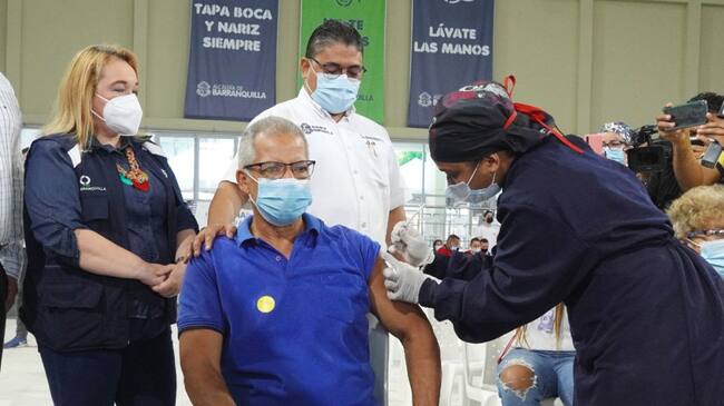 Nelson Bernal recibió la vacuna un millón contra el COVID-19 en Barranquilla.(Prensa Alcaldía)