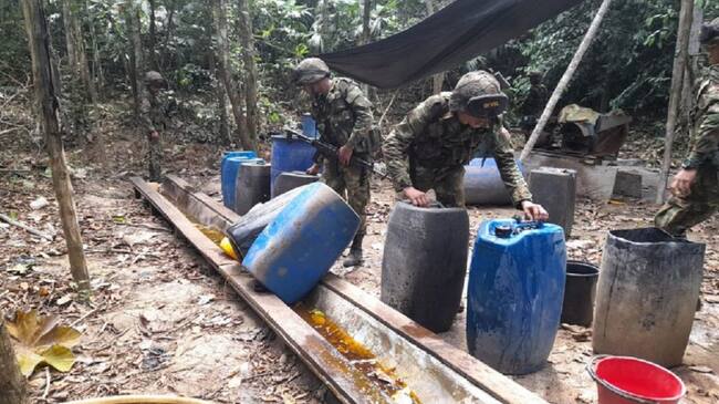 En el sitio fueron incautados más de 60 galones de pasta base de coca, 120 galones de combustible y varios elementos usados para procesar el alcaloide.