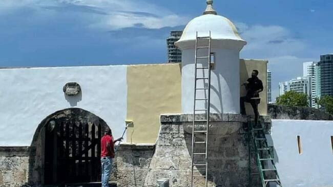 Con sorpresa e indignación muchos cartageneros evidenciaron la intervención con pintura blanca y amarilla de una parte de la muralla ubicada en el Club de Pesca del barrio Manga, específicamente en el fuerte San Sebastián del Pastelillo.