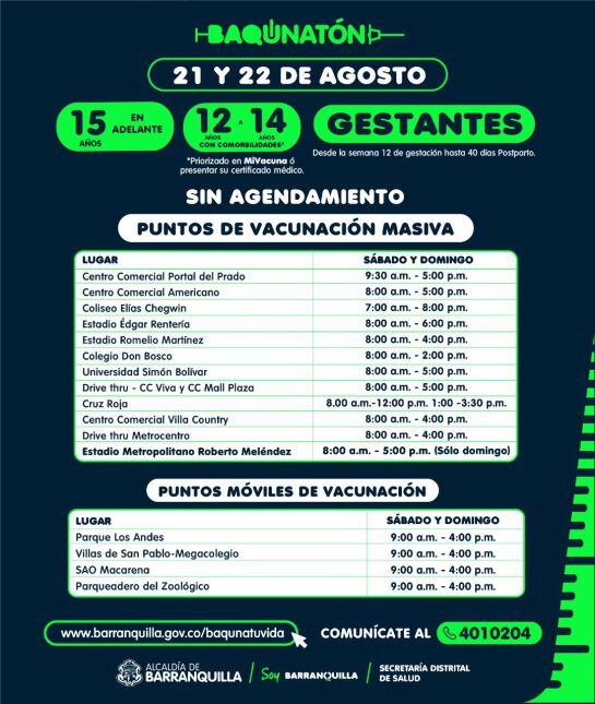 Serán más de 104.000 jóvenes los que podrán asistir a los más de 70 puntos disponibles en Barranquilla para empezar su proceso de inmunización contra el letal virus.
