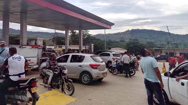 El desabastecimiento se presenta en poblaciones como El Carmen de Bolívar, San Jacinto y San Juan Nepomuceno, donde se observan largas filas principalmente de motociclistas, tratando de comprar algo de combustible para actividades comerciales como el mototaxismo y la agricultura.