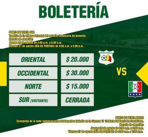 Precio de la boletería para el partido del clásico cafetero en Armenia / Cortesía Deportes Quindío