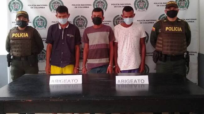Los tres detenidos responden a los nombres de Diego Armando Chiquillo Romero, Javier Enrique Martínez Orellano y Jesús Alberto Fonseca Fernández, a quienes los capturaron en flagrancia cuando bajaban de una canoa tres bovinos de 15 que habían sido denunciados como robados la noche anterior los cuales iban a ser trasladados hasta el casco urbano donde serían sacrificados y comercializado en carnicerías clandestinas.