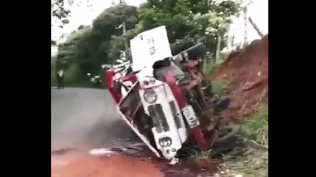 El percance se registró en el sitio conocido como la Fonda, sector de la Reforma al sur de Cali. Allí el vehículo, que presta el servicio en zonas de la ladera de la ciudad, perdió el control y se volcó.