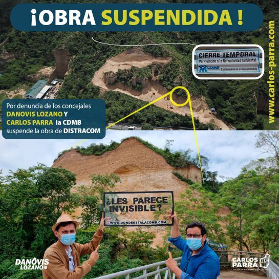 La suspensión de las obras ocurre días después de que Carlos Parra y Danovis Lozano, concejales del partido Verde promovieran un debate sobre el volteo de tierras en el área metropolitana de Bucaramanga.