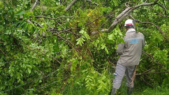 El equipo técnico de Afinia adelanta las labores de remoción de ramas de árboles que reposan sobre las redes, reparación de elementos averiados e instalación de nuevas estructuras y redes sobre los circuitos San Blas, Pozo Azul, San Martín de Loba 1 y 2, San Sebastián, Pinillos, Hatillo de Loba 2 y Barranco de Loba 1.