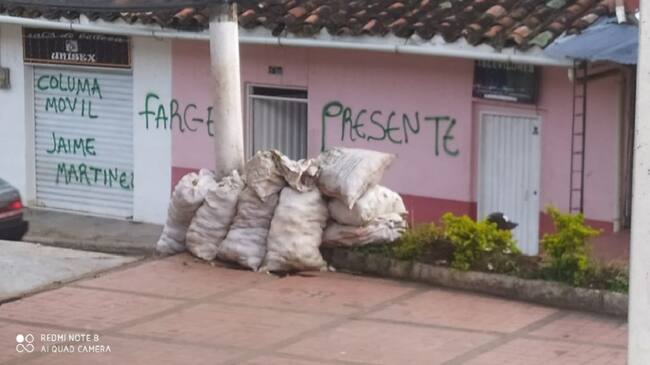 Pintan letreros alusivos a disidencias de las Farc en Mondomo, Cauca