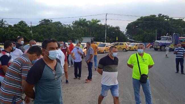 Comunidad y taxistas mantienen bloqueada la vía Oriental a la altura del peaje de Sabanagrande, por protesta para pedir el desmonte del peaje.