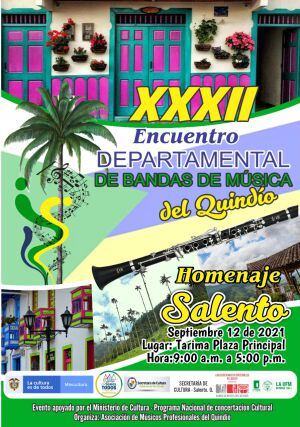 En el parque principal de Salento este domingo 12 de septiembre desde las 9 de la mañana se llevará a cabo el encuentro departamental de bandas de música del Quindío.
