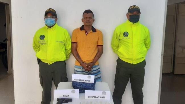 Allí no termina este novelón ya que cuando los miembros de la Sijín realizaban la diligencia de arresto al parecer le encontraron 164 dosis de estupefacientes distribuidas en pequeñas cantidades listas para su comercialización, un arma traumática y además lucía un pantalón de uso privativo y exclusivo para personal del Inpec.