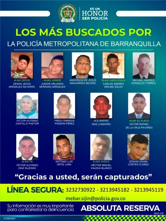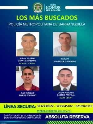 La Policía Metropolitana de Barranquilla dio a conocer los tres carteles con los más buscados por delitos como homicidio, hurto y extorsiones, tal como se anunció en el marco del plan de intervención contra el delito.