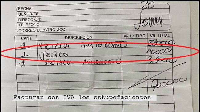 Sin embargo, uno de los temas que más llamó la atención de la investigación, es el cobro que estarían haciendo en los llamados “amanecederos” del sector, allí en las facturas no solo está el valor del licor o comidas consumidas, también aparece el cobro por el llamado “perico” (dosis de cocaína) al que también le estarían cobrando IVA.