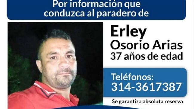 "Estamos ofreciendo un pago por información de hasta $10 millones, que nos permita ubicar a Erley Osorio Arias, de la Serranía de San Lucas, y que está desaparecido en la cabecera del municipio de Montecristo", informó José Ricardo Ardila, director de Seguridad Ciudadana de Bolívar.