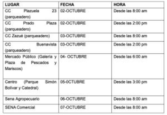 Mientras tanto, el martes 5 de octubre, la vacunación contra el COVID-19, llegará al Centro Histórico, con jornadas simultáneas en el parque de Bolívar y la Catedral Basílica, desde las 3:00 de la tarde.
